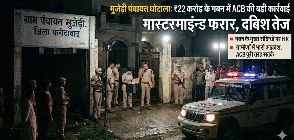 फरीदाबाद, (सरूप सिंह)। ग्राम पंचायत मुजेड़ी में बिना किसी विकास कार्य के 22 करोड़ रुपये के गबन मामले में भ्रष्टाचार