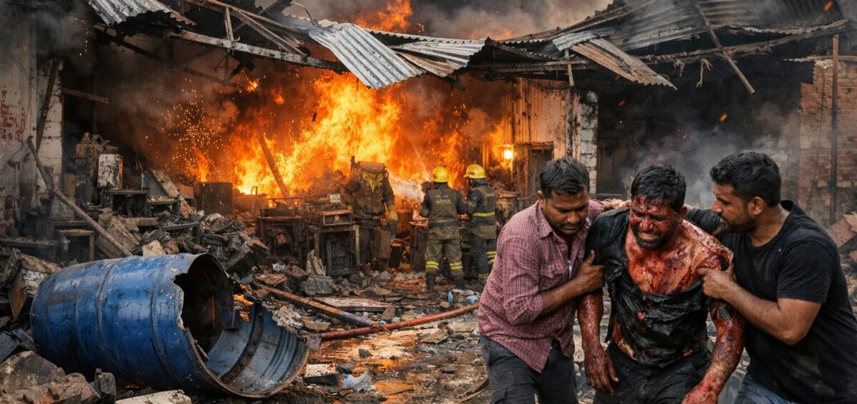 एसजीएम नगर में केमिकल ड्रम ब्लास्ट से वर्कशॉप में आग, छत उड़ी; एक कर्मचारी झुलसा