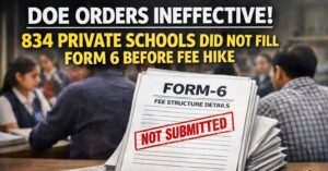 फरीदाबाद, (सरूप सिंह)। जिले में निजी स्कूलों द्वारा शिक्षा निदेशालय के आदेशों की अनदेखी का मामला सामने आया है। नए शैक्षणिक सत्र से पहले फीस बढ़ाने के लिए अनिवार्य फार्म-6 भरना जरूरी होता है, लेकिन इसके बावजूद बड़ी संख्या में स्कूलों ने इस प्रक्रिया को पूरा नहीं किया है। जिले के कुल 1372 निजी स्कूलों में से केवल 538 स्कूलों ने ही फार्म-6 भरा है, जबकि 834 स्कूल अब तक यह फार्म भरने में पीछे हैं।