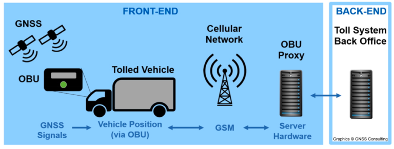 Global Navigation Satellite System (GNSS) के लिए एक ऑनबोर्ड यूनिट (ओबीयू) वाहन के सटीक स्थान को निर्धारित करने के लिए गाड़ी में लगाई जायगी, जो उपग्रह संकेतों का उपयोग करके जितना सफर हाइवे पर पूरा किया है उसका डाटा भेजेगी।