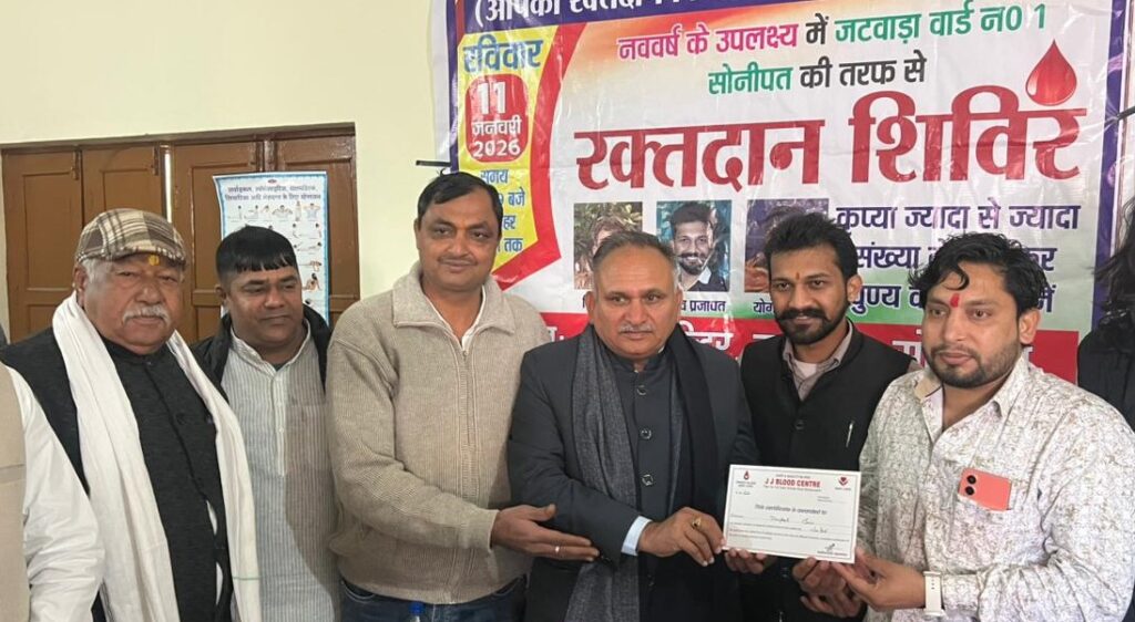 सोनीपत, (प्राइम न्यूज़ ब्यूरो)। नगर निगम मेयर राजीव जैन ने वार्ड नंबर एक स्थित शिव मंदिर जटवाड़ा में आयोजित रक्तदान