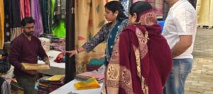 उतर प्रदेश के पवेलियन में स्थित स्टॉल नंबर 110 पर बनारस के शिल्पकार मोहम्मद आसिफ द्वारा बनारसी साड़ियों का स्टॉल लगाया गया है। जो पर्यटकों को विशेषकर महिलाओं को अपनी ओर खींच रहा है। शिल्पकारों की अद्भुत कलाकारी का आलम यह है कि विदेशी मेहमान भी इन साड़ियों के मुरीद बन रहे हैं। स्टॉल्स पर सुबह से ही महिलाओं की भीड़ लग रही है और वे जमकर खरीदारी कर रही हैं।