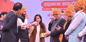 अपणा घर विरासत सांस्कृतिक प्रदर्शनी में उप-राष्ट्रपति सी.पी. राधाकृष्णन व मेहमानों का स्वागत लोक पारंपरिक तरीके से पगड़ी पहना कर किया गया।